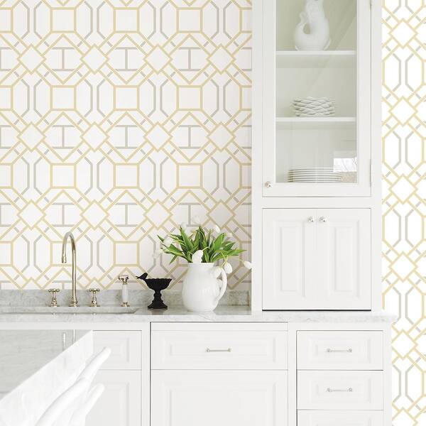 Dauphin Mustard Lattice Light Grey Wallpaper Sample