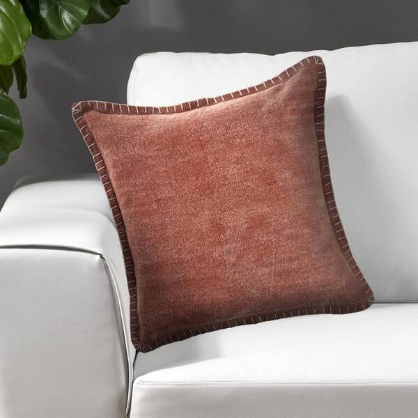 Aegean Clay Solid Color Embroidered Border Cozy Poly-Fill 24 in. x 24 in. Throw Pillow