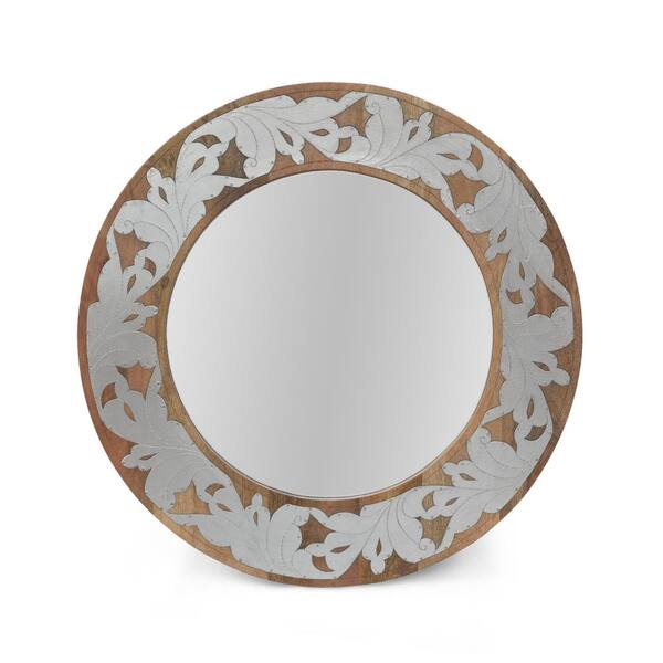 1.00 in. W x 22.50 in. H Indian Handcrafted Mango Wood Aluminum Fitted Round Mirror