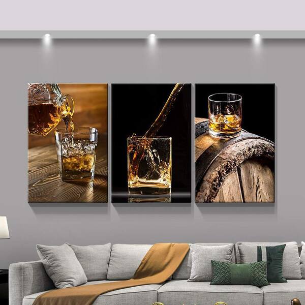 1.50 in. H x 36.00 in. W Multicolor Whiskey Modern by Wall Art Decor Framed Wooden Wall Art-3 Panels