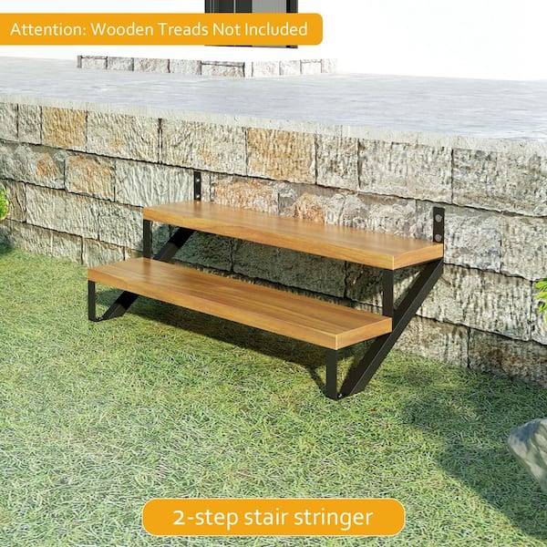 1.67 ft. Pressure-Treated Unfinished Metal 2-Steps Stringer 2-Pack Black Load Capacity 500 lbs. Stair Riser