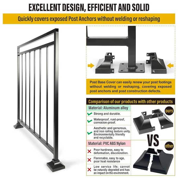 1 Aluminum Deck Post Base Cover Skirt for Handrail Stair Porch Deck Railing Black With Easy Installation Feature