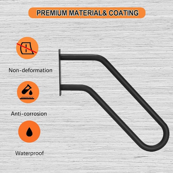1 Iron U-Shaped Wall Mount Handrail Outdoor Grab Bar for 1-3 Steps Matte Black Durable Easy Install 1 Piece