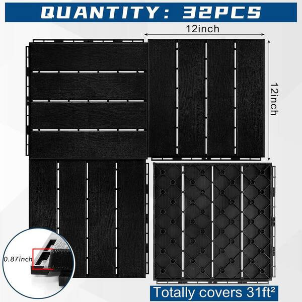 1 ft. x 1 ft. Plastic Interlocking Deck Tiles Waterproof for for Patio, Porch, Poolside and Balcony in Black-(32-Pack)
