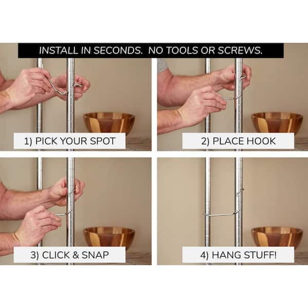 1 in. Metro, Metal or Wire Shelf Pole Shelving Adhesive Hooks for Storage Organization (5-Pack)