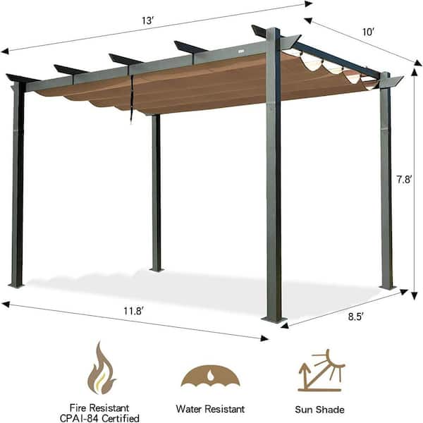 10 ft. x 13 ft. Outdoor Retractable Pergola with Heavy Duty Grape Trellis Sunshade Cover in Dark Gray