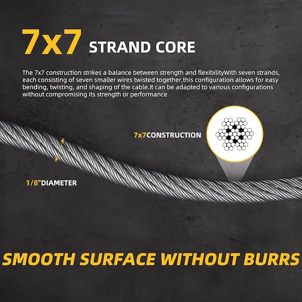 1000 ft. T316 Stainless Steel Cable Railing with Cutter 1/8 Deck Railing Aircraft Wire Rope for Marine 7 x 7 Uncoated