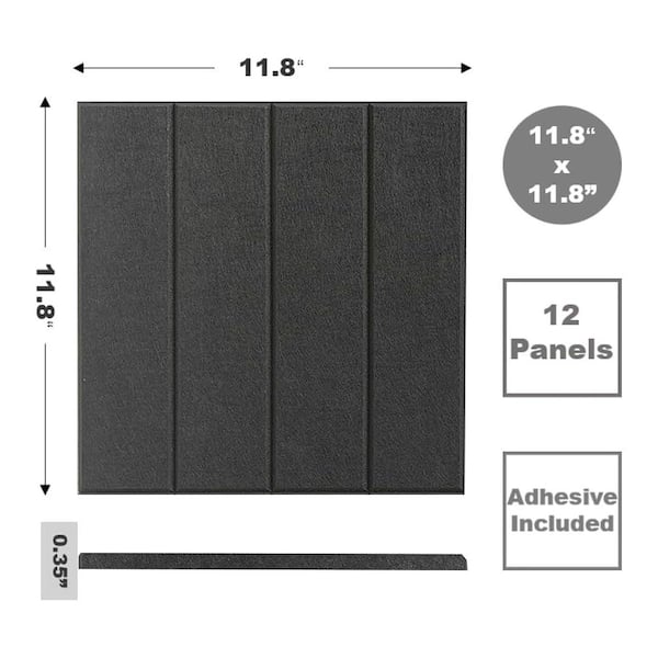 11.8 x 11.8 Felt Wall Tiles Black Recycled Polyester Vertical Grooves Texture with Removable Adhesive Tabs 12-Pack