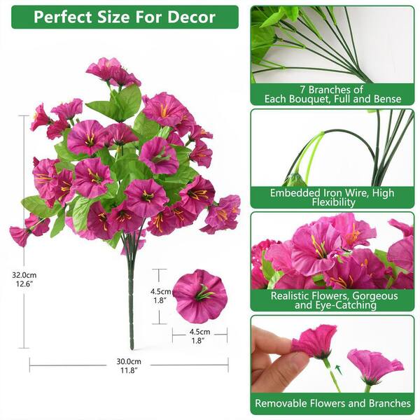 12.00 in. 8 Bundles Artificial Flowers for Outdoor Spring Decoration, UV Resistant Faux Flowers