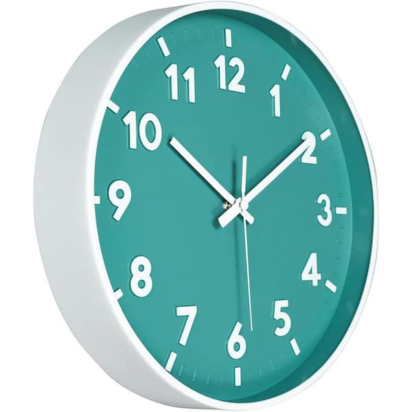 12 in. Teal Analog Wall Clock Silent Non-Ticking Battery Operated 3D Number Modern Style for Bedroom and Living Room