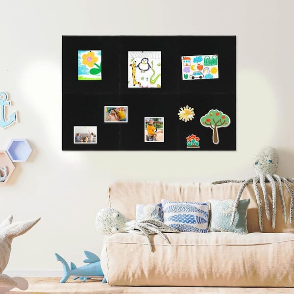 12 x 12 Black Felt Cork Board Tiles Self Adhesive Soundproof Acoustic Panels with Pushpins for Home Office School 6-Pack
