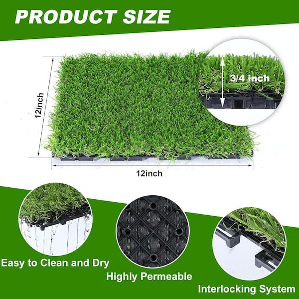 12in. Green Artificial Grass Tiles Interlocking Turf Squares Deck 9 Pack
