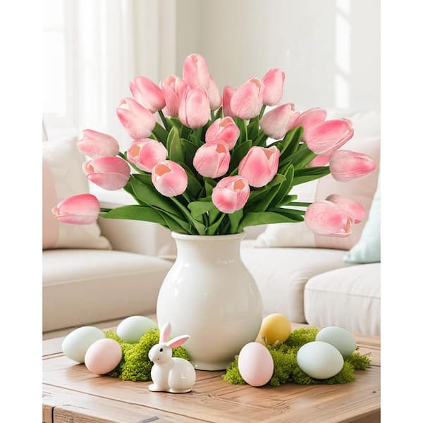 13 in. H Peach Pink Artificial Tulip Flowers for Home Decor and Floral Arrangements