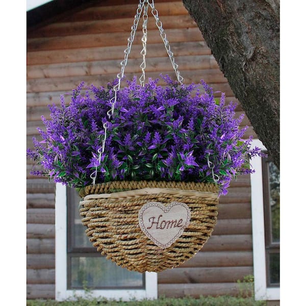 13 in. H Purple Indoor/Outdoor Artificial Lavender Flower Shrubs (8 Bundles)
