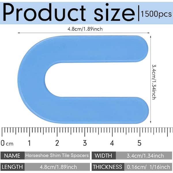 1500-Pieces Horseshoe Shims Tile Spacers 1/16 in. Structural U Shape Plastic Shims for Leveling in Blue