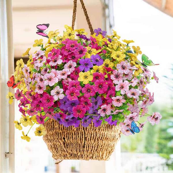 2.00 in. 12 Bundles UV Resistant Artificial Outdoor Flowers with 6 Butterflies for Garden Decor