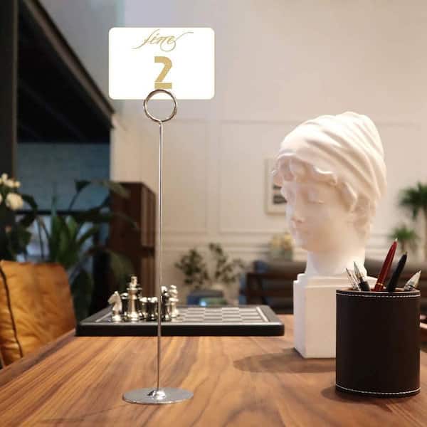 2.72 in. x 12 in. Silver Round Stainless Steel Place Card Holders Set of 16-Pieces for Photos, Food Signs, Memo Notes