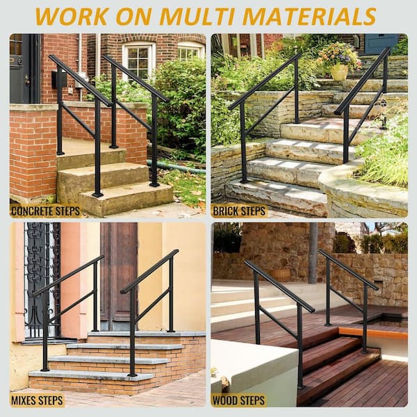 2-Pack Adjustable Metal Handrails for Outdoor Steps Black Safety Stair Railings w/ Comfortable Grip, Easy Installation