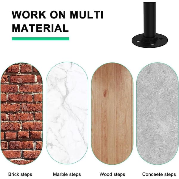 2 Pack Wrought Iron Handrails for Outdoor Steps Adjustable Metal Stair Railing Black w Installation Kit for 2-3 Steps