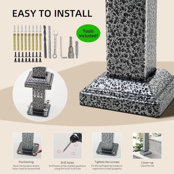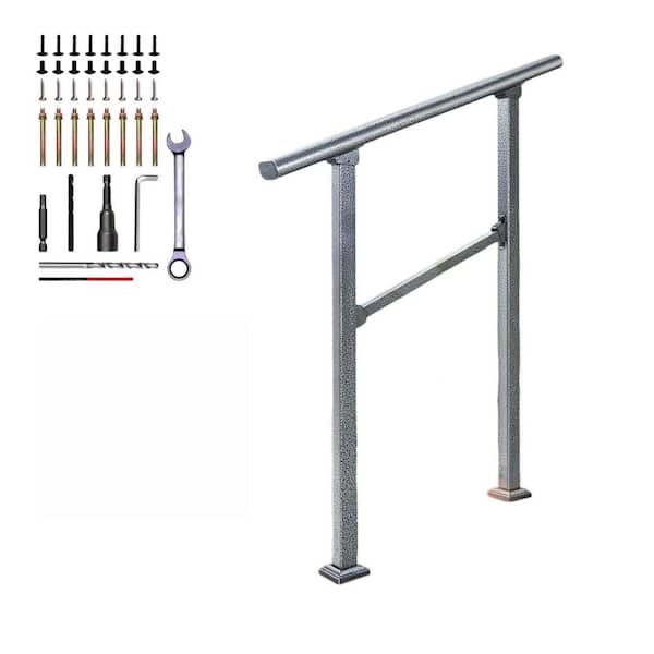 2-Step Adjustable Stair Railing Galvanized Steel Hand Rails for Outdoor Steps Silver on Black Easy Install Sturdy