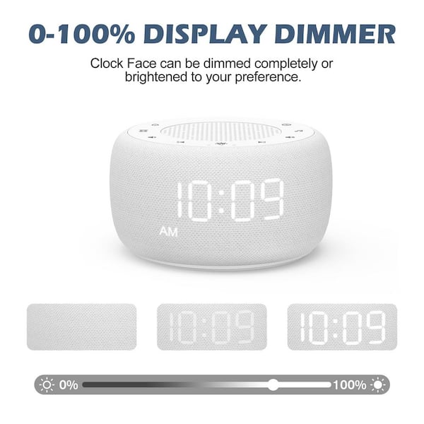 2 in 1 White Digital Acrylonitrile Butadiene Styren Lighted Table Alarm Clock and Sound Machine