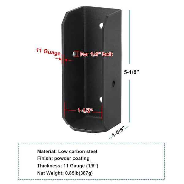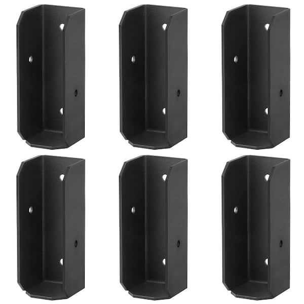 2 x 6 Black Deck Fence Rail Bracket for Wood U Shape Concealed Joist Hanger 11 Gauge Carbon Steel 6 Pack