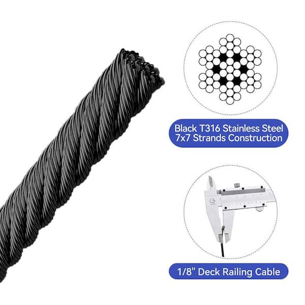 200 ft. T316 Stainless Steel Black Cable Railing with Cutter for Deck Cable Railing System 1/8 in. 7 x 7 Strands