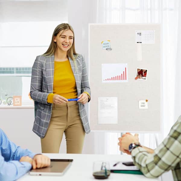 24 x 36 Linen Bulletin Board White Framed Cork Board White Oak Frame Vision and Decorative Hanging Pin Board