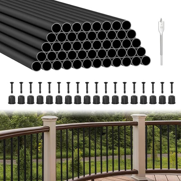 26 in. H x 1 in. W Black Aluminum Stair Railing Kit with Anti-UV Connectors