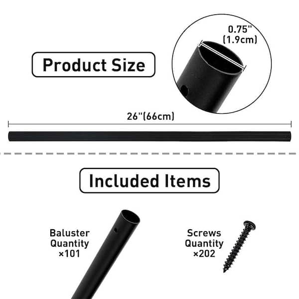 26 in. x 0.75 in. Black Aluminum Round Deck Balusters Metal Spindles for Outdoor Stair Deck Porch 101-Pack