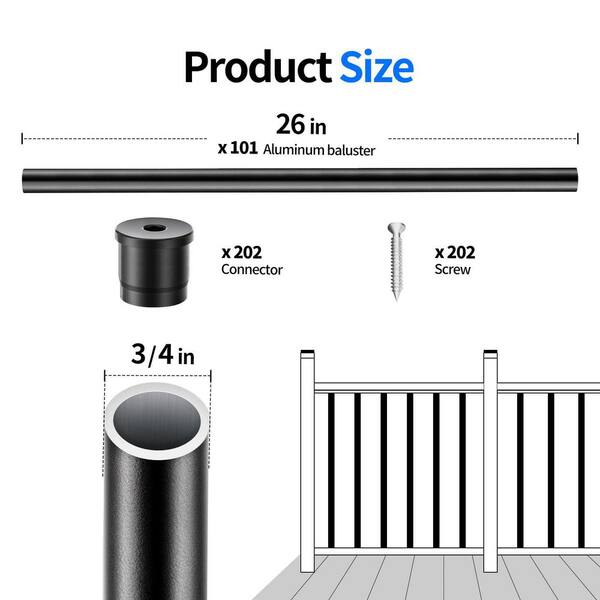 26 x 3/4 Aluminum Round Deck Balusters Black Indoor Outdoor Stair Porch Spindles 101-Pack