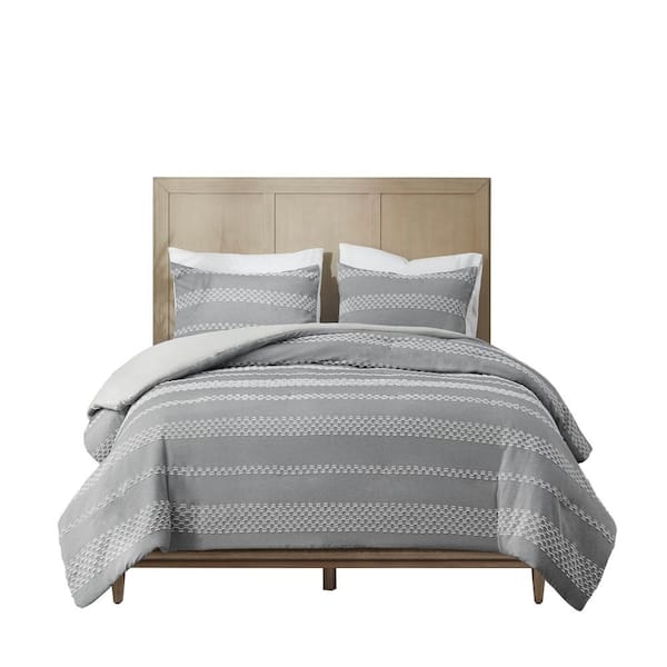 3-Piece Clipped Jacquard Polyester Full/Queen Duvet Cover Set, Gray