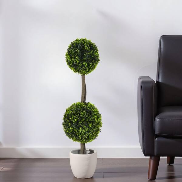 3 ft. Artificial Topiary Boxwood Double Ball Tree in Pot, Set of 2