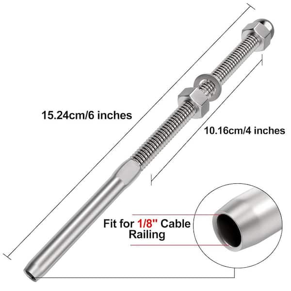 30 Pack 6 Long 1/8 Swage Threaded Terminal T316 Stainless Steel for Cable Railing 2 x 2, 4 x 4 Wood Metal Posts