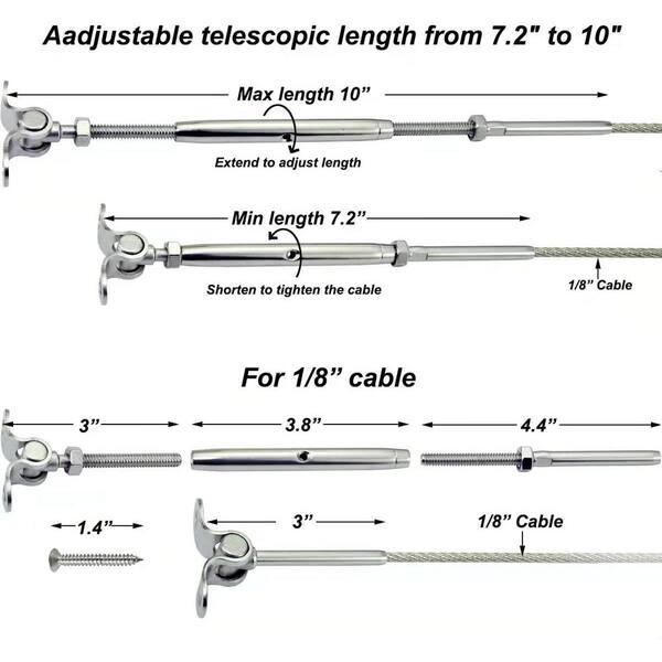 • Includes 30 turnbuckle tensioners, end fittings and 120 screws