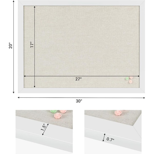 30 x 20 Rectangular White Linen Cork Bulletin Board with Wood Frame Wall Mounted for Office School Home Decor