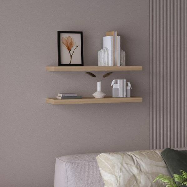 31.5 in. W x 9.8 in. D Wall Mounted Floating Decorative Wall Shelf in Old Pine (Set of 2)