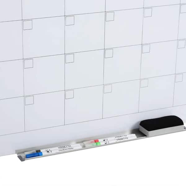 35 in. x 23 in. Dry Erase Calendar Board for Wall, Glass Whiteboard Monthly Planner with 4-Markers, 1-Eraser, Frameless