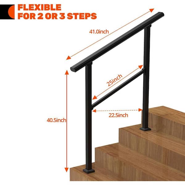36 Metal Outdoor Stair Railing Handrails for 2-3 Steps with Installation Kit Durable Rust-Proof Iron