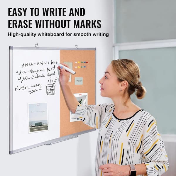 36 in. x 24 in. Magnetic Whiteboard and Cork Board Combo with Aluminum Frame, Easy Erase and Full Accessories Set, White