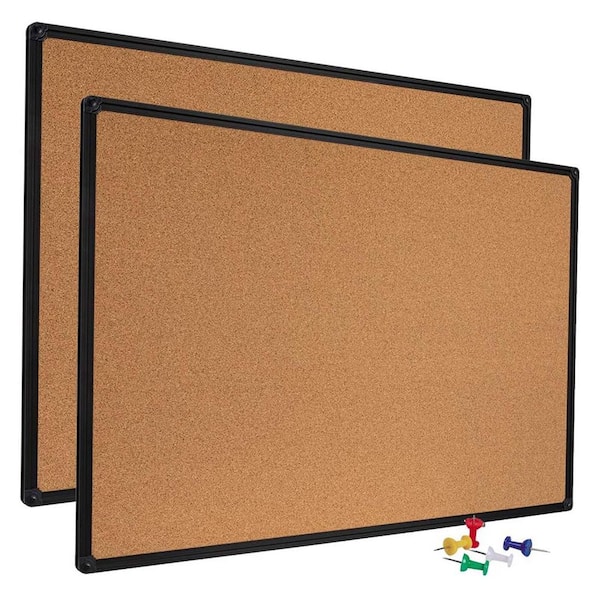 36 x 24 in. Cork Notice Board Bulletin Message Pin Board Black Aluminum Frame Self-Healing Surface 2-Pack