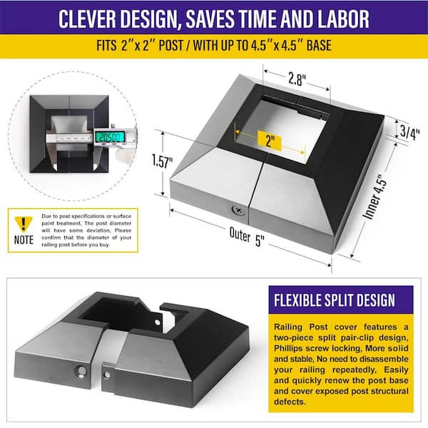 • Designed to fit 2'x2' posts with a 4.5'X4.5" base