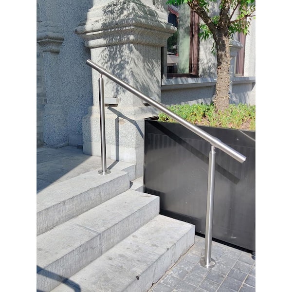 4-Step Handrail DIY 304-Stainless Steel Transitional Hand Rails with Installation for Porch Stair Brushed Silver Metal