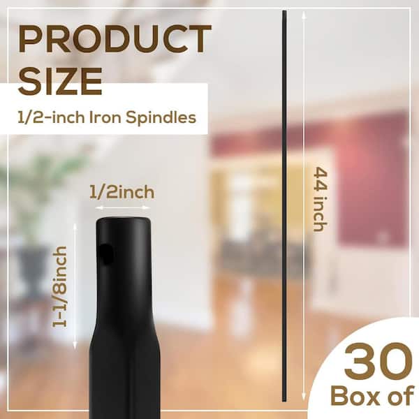 44 in. x 1 in. Wrought Iron Plain Hollow Iron Spindles Deck Balusters in Black-(30-Pack)