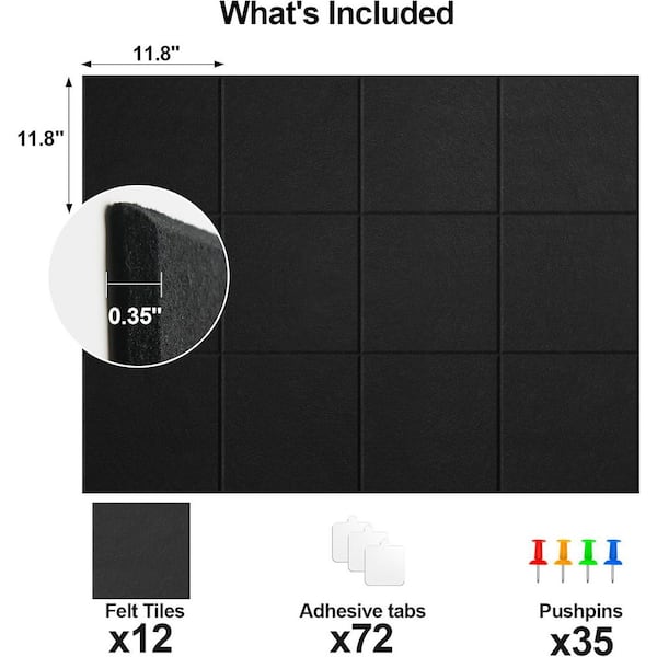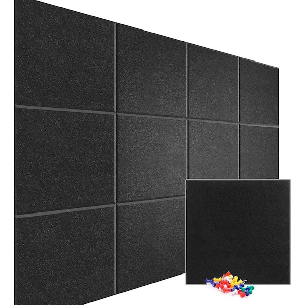 47 x 35 Cork Bulletin Board Black Felt Wall Tiles 12-Pack Removable Adhesive Sound Insulation for Office and Home