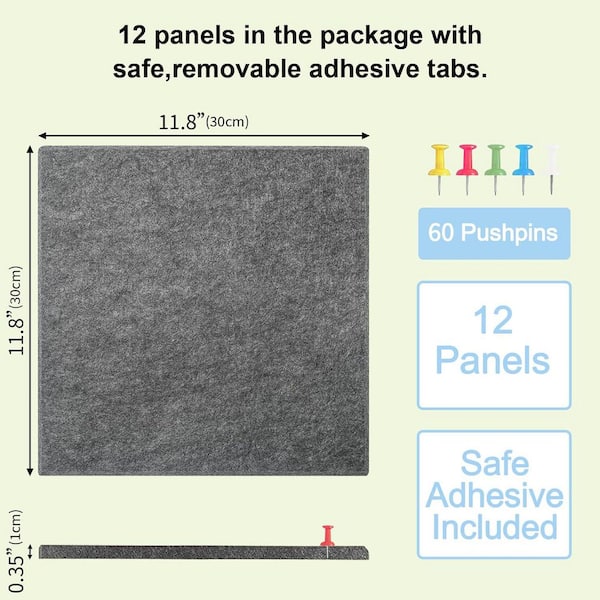47 x 35 Felt Wall Tiles Dark Grey Luxurious Texture Modern Alternative Cork Board w/ Adhesive Tabs Push Pins Home Office