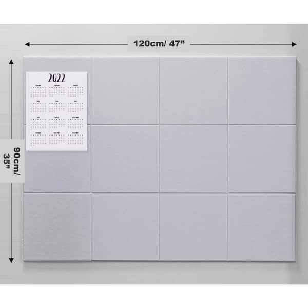47 x 35 Felt Wall Tiles Gray White 12-Pack with Removable Adhesive Tabs for Home Office Pin Board Tack Board