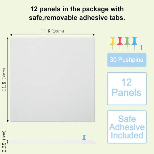 47 x 35 Felt Wall Tiles White 12-Pack Includes 48-Adhesive Tabs 60-Push Pins Modern Alternative to Cork Board