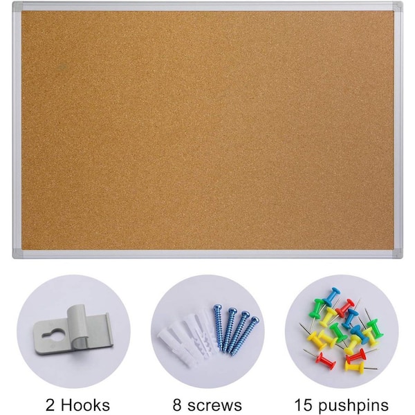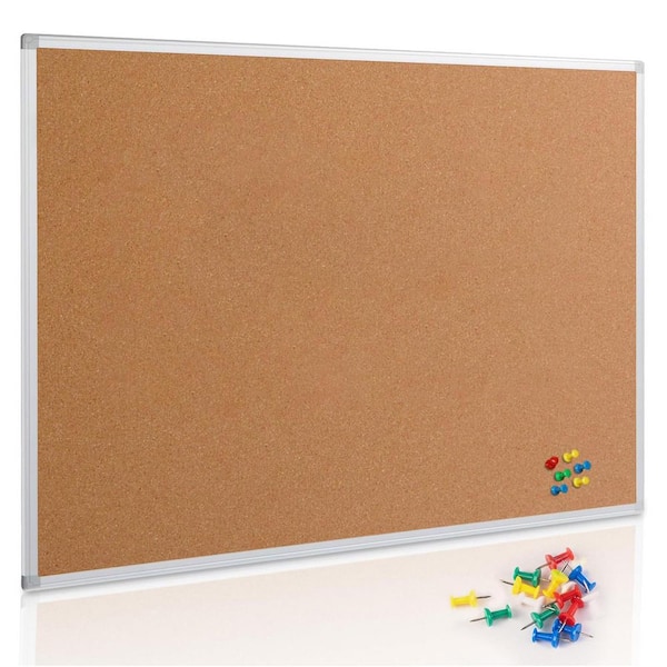 48 x 36 Cork Bulletin Board Aluminum Frame Self-Healing Wall Mounted Notice Board w/ Push Pins for School, Home, Office