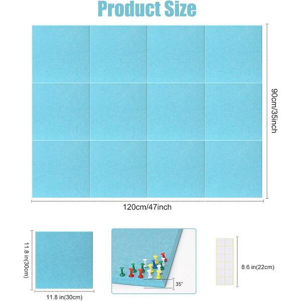 48 x 36 Felt Wall Tiles Sky Blue Cork Board Alternative 12-Pack with Removable Adhesive for Home Office Decor